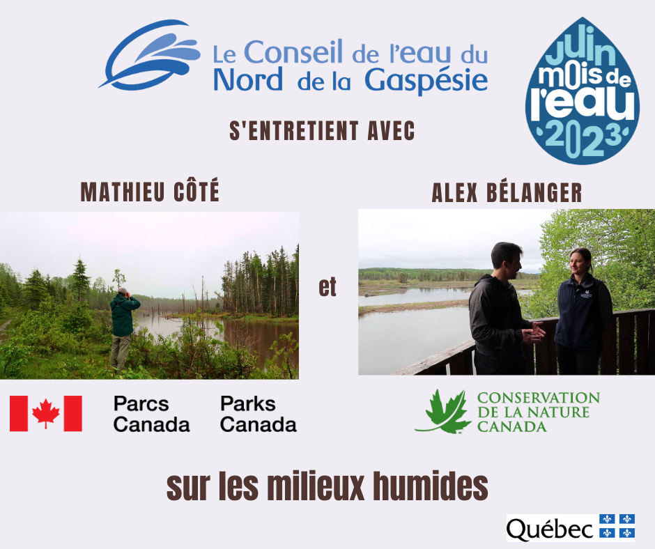 Le Conseil de l'eau du nord de la Gaspésie a réalisé différentes capsules vidéos informatives sur les milieux humides. Pour ce faire, nous avons eu l'honneur de s'entretenir avec Mathieu Côté, gestionnaire de la conservation et des ressources à Parc Canada et Alex...